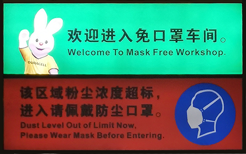 2009年,美國金霸王總部為了表彰該案例的卓越成就,專門給總裝生產(chǎn)線車間頒發(fā)了“免口罩車間”匾牌,鼓勵(lì)員工上班不用戴口罩。